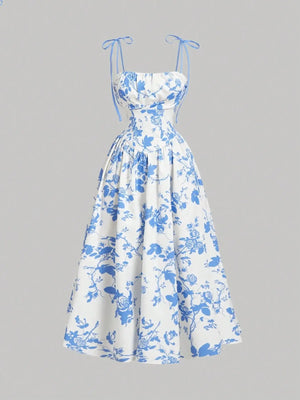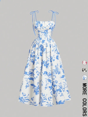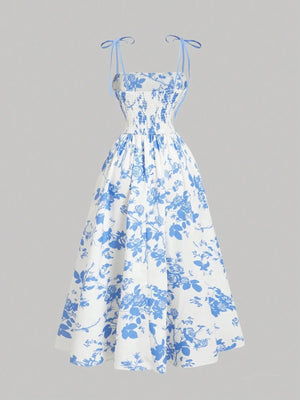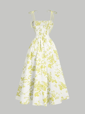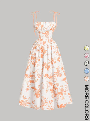 Embrace timeless elegance with this stunning floral A-line dress, perfect for spring and summer occasions. Featuring a classic retro-inspired print and refined silhouette, this piece effortlessly transitions from casual to sophisticated. The suspender bow detail adds a charming vintage touch, while the slim A-line cut flatters your figure with graceful movement. Ideal for garden parties, brunches, or weekend outings, this dress combines nostalgic style with contemporary comfort for the modern woman seeking understated luxury.