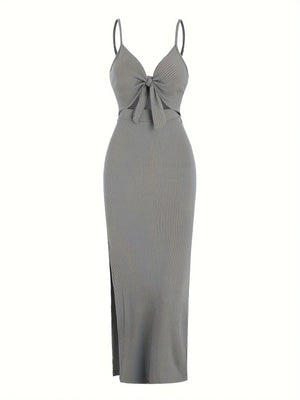 Sexy and Stylish: The spaghetti strap design and cutout side split add a touch of sexiness to your look, while the ribbed knot detail creates a stylish and trendy vibe.