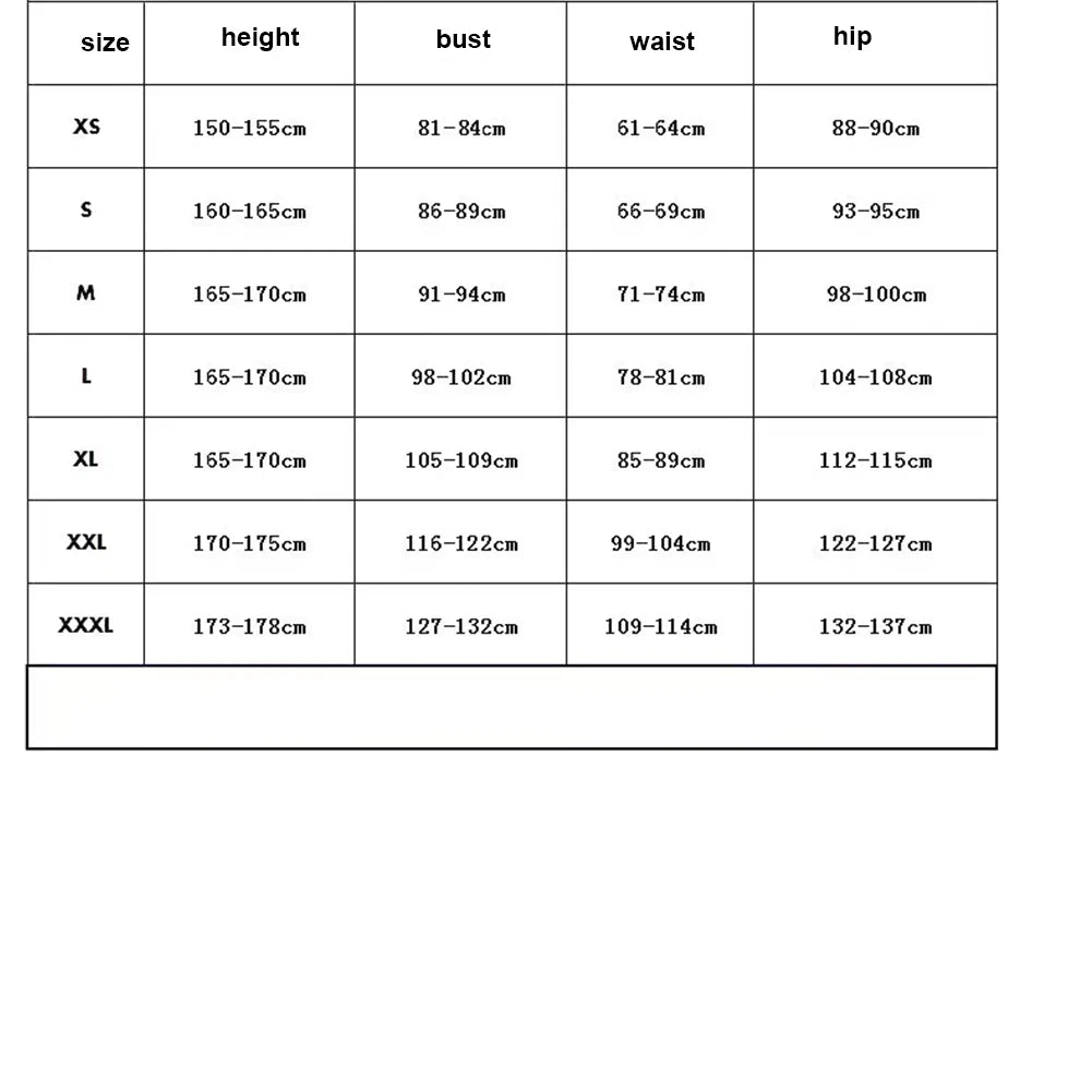 XS, S, M, L, XL, XXL, XXXL |